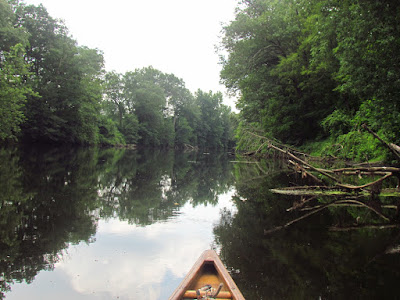 I started late, left home late, enjoyed the morning sitting in the chair looking out the window. That's not particularly like me, but it happens. I headed toward the Great Swamp, but then had second thoughts. I went around the cloverleaf...the full tour of the cloverleaf and back to heading toward the Great Swamp. Curiosity won out. It is mid summer and the USGS gauge showed a reasonable amount of water, or at least what I think might be a reasonable amount of water. Too low and the trip is hellish - crawling over logs every couple hundred yards.